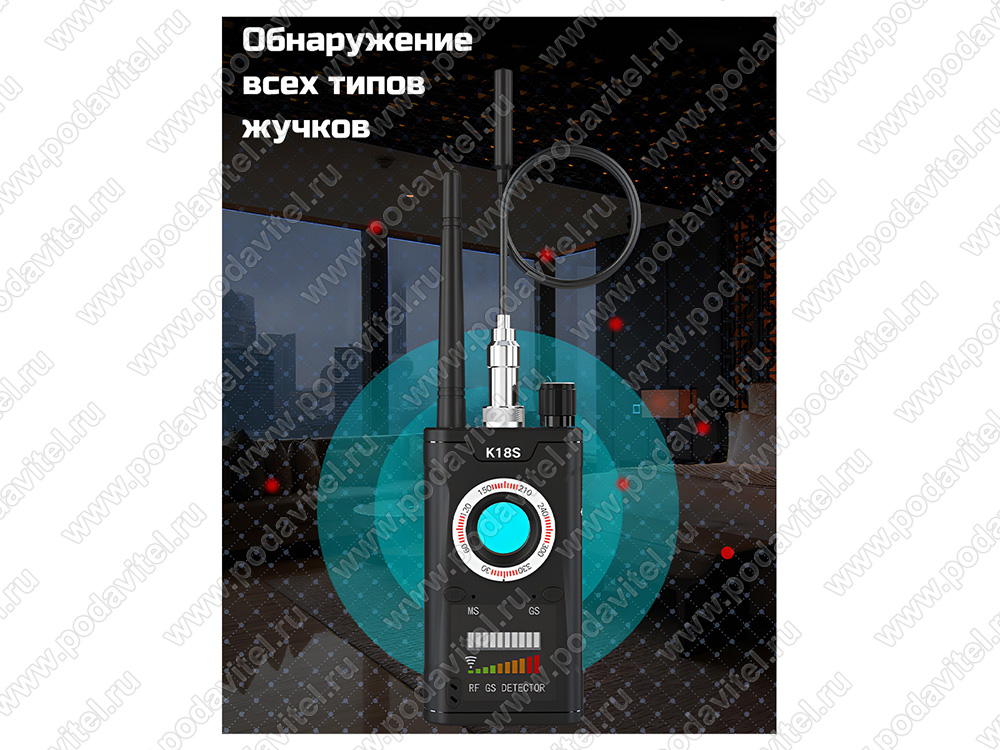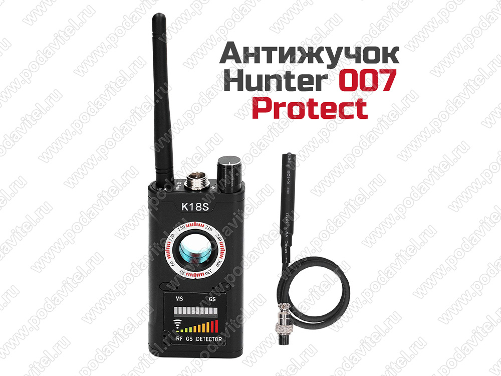 Антижучок «Hunter 007-Protect» - прибор для поиска прослушки, обнаружения скрытых камер и GPS жучков совмещает в себе функции 3 устройств – обнаружителя радиоканальной передачи данных, обнаружителя GPS-трекеров и обнаружителя камер видеонаблюдения. Устройство позволяет обнаружить радиосигналы от беспроводных «жучков» и радиопередающих микрофонов и камер, работающих в диапазоне частот от 1 МГц до 8000 МГц.