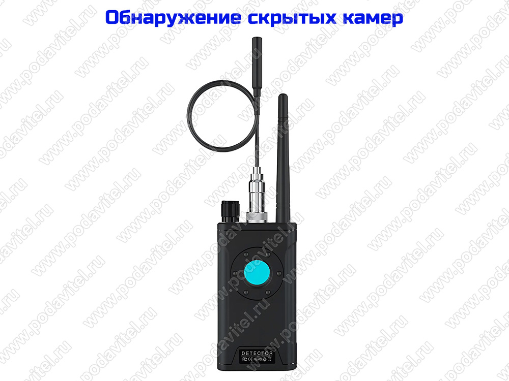 Щуп с магнитным детектором позволяет обнаружить прикрепленный к днищу машины GPS-трекер, независимо от того, активен ли он в момент поиска. Оптический обнаружитель камер применяется для поиска как проводных, так и беспроводных видеокамер независимо от их габаритов. Обнаружитель излучает световой сигнал, который отражается от линз объективов камер, что позволит Вам обнаружить даже выключенную камеру.